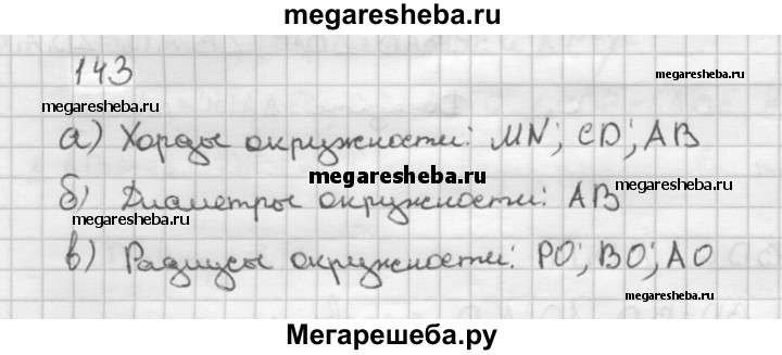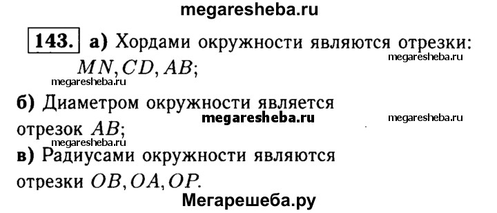 143 Какие из отрезков, изображённых на рисунке 90, являются: а) хордами окружности; б) диаметрами окружности; в) радиусами окружности?