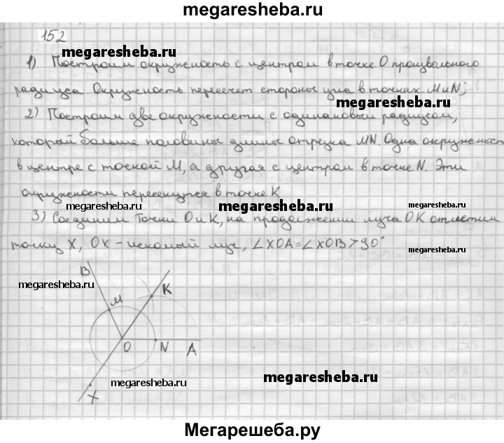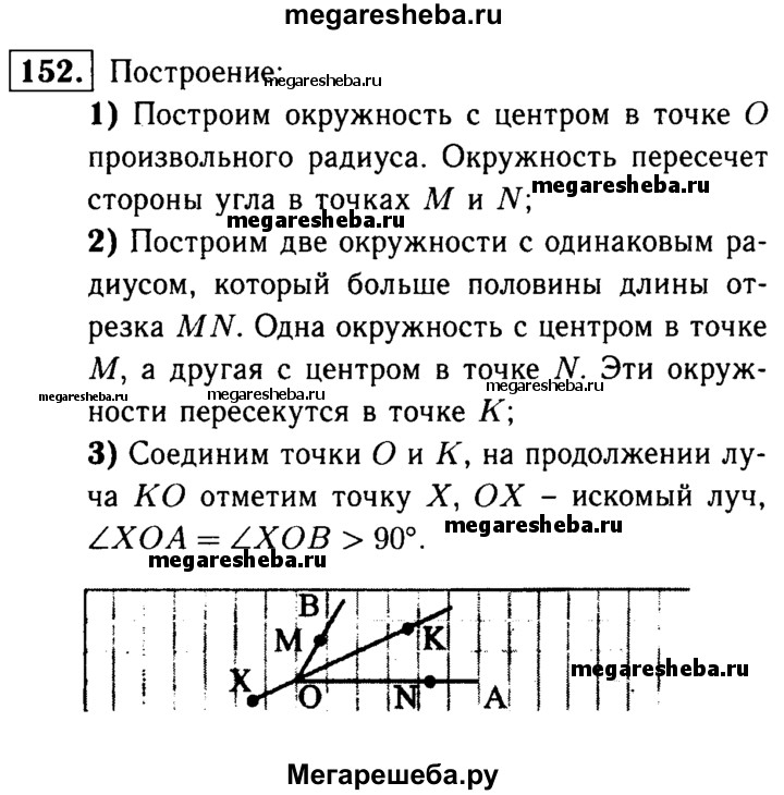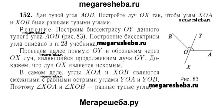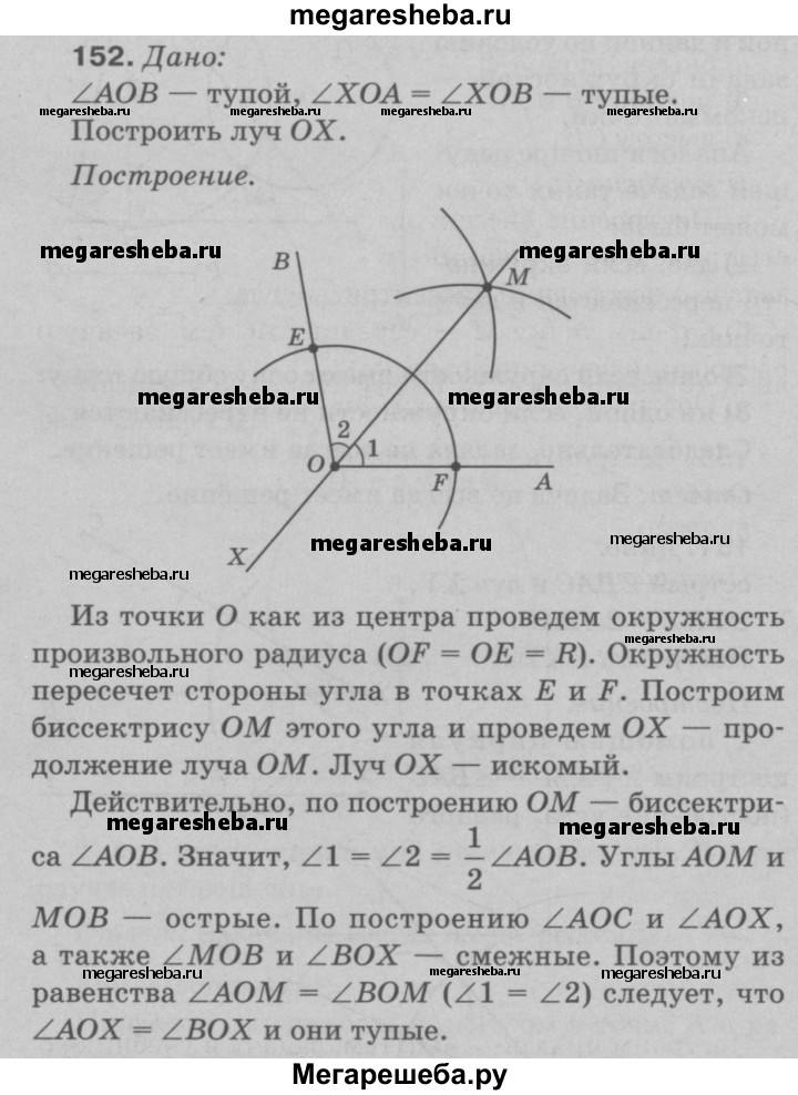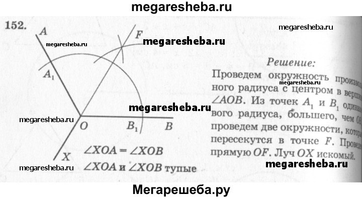 152 Дан тупой угол АОВ. Постройте луч ОХ так, чтобы углы ХОА и ХОВ были равными тупыми углами.