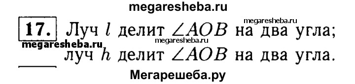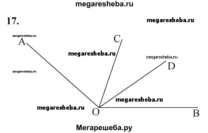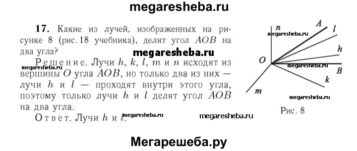 17 Какие из лучей, изображённых на рисунке 18, делят угол АОВ на два угла?