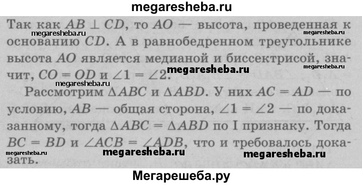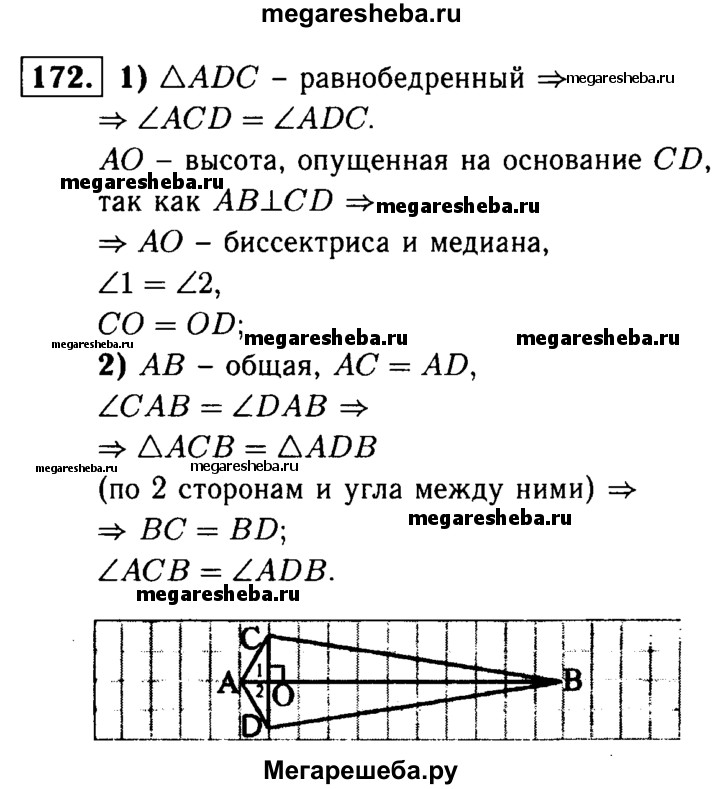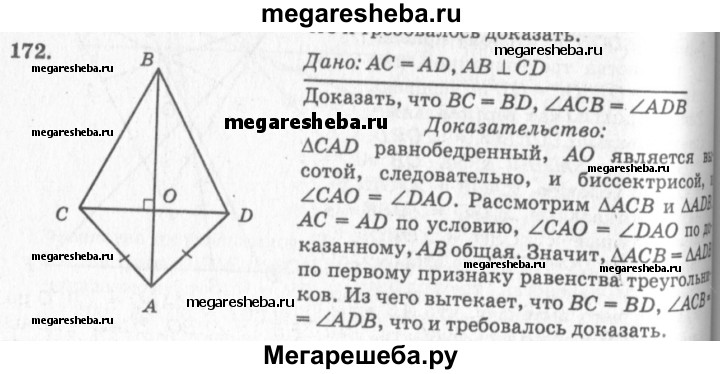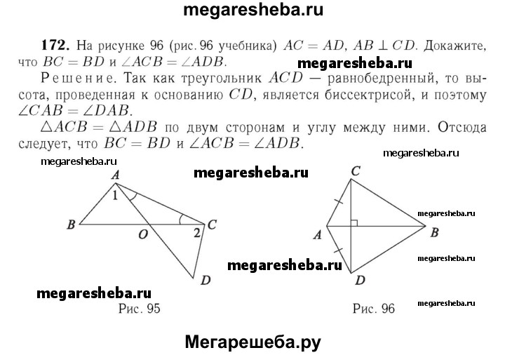 172 На рисунке 96 АС = AD, АВ 1 CD. Докажите, что ВС = BD и ∠ACB = ∠ADB.