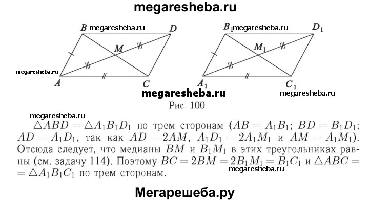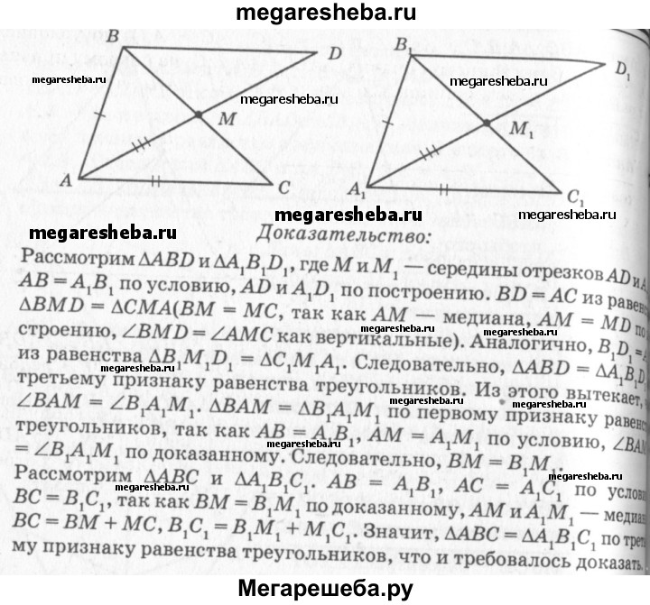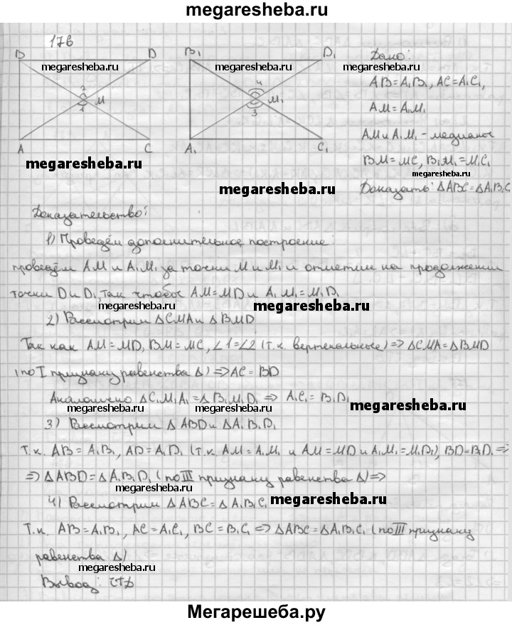 176* Докажите, что треугольники ABC и А1В1С1 равны, если АВ = А1В1, АС = А1С1, AM = А1М1, где AM и А1М1 — медианы треугольников.