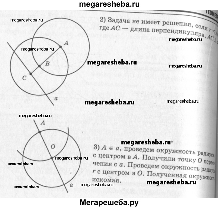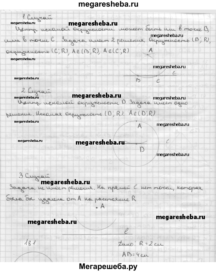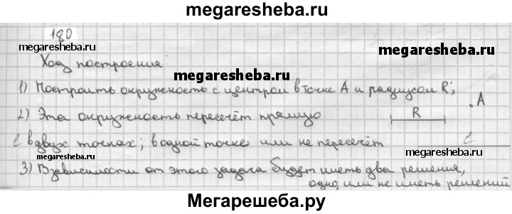180 Постройте окружность данного радиуса, проходящую через данную точку, с центром на данной прямой.