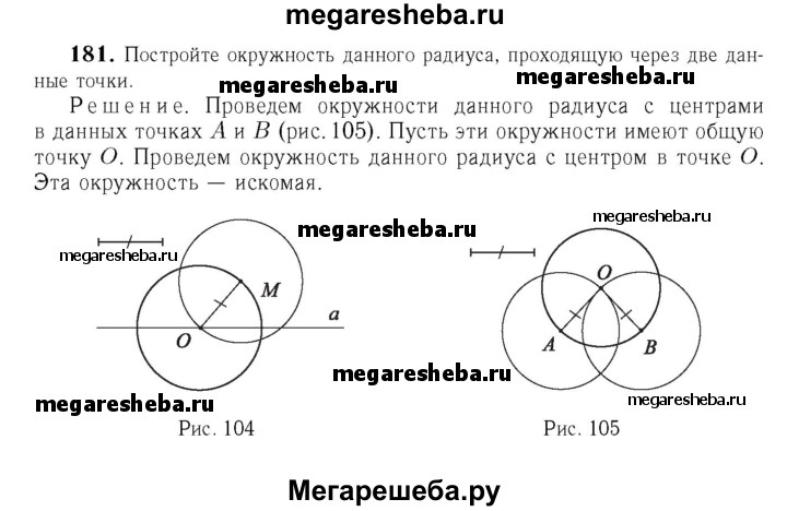 181 Постройте окружность данного радиуса, проходящую через две данные точки.
