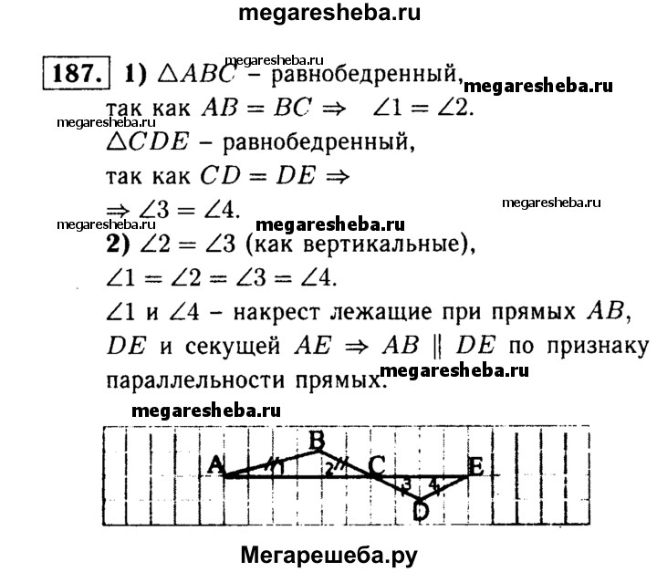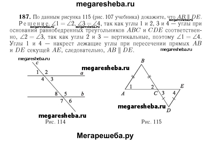187 По данным рисунка 107 докажите, что АВ || DE.