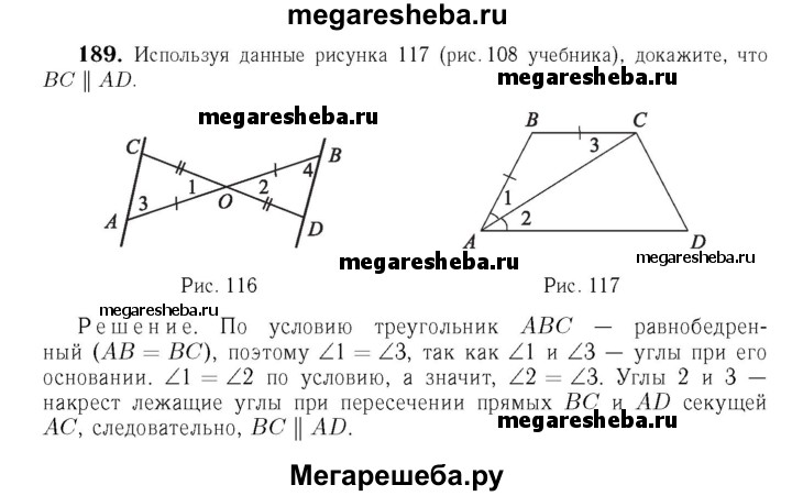 189 Используя данные рисунка 108, докажите, что ВС || AD.