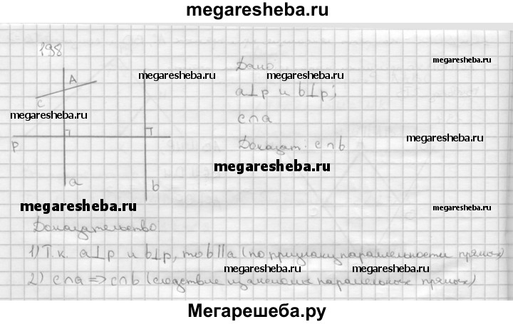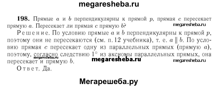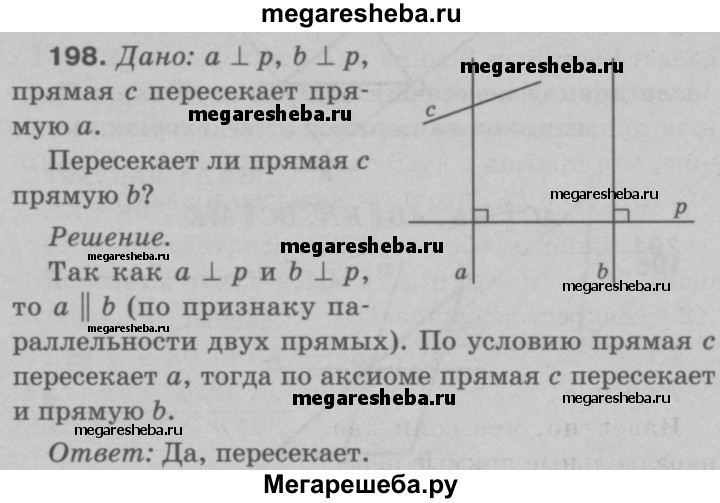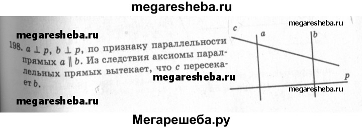 198 Прямые а и b перпендикулярны к прямой р, прямая с пересекает прямую а. Пересекает ли прямая с прямую b?