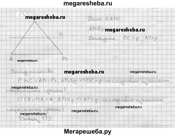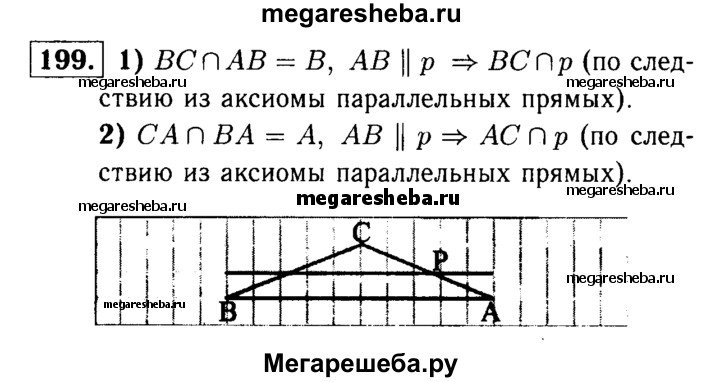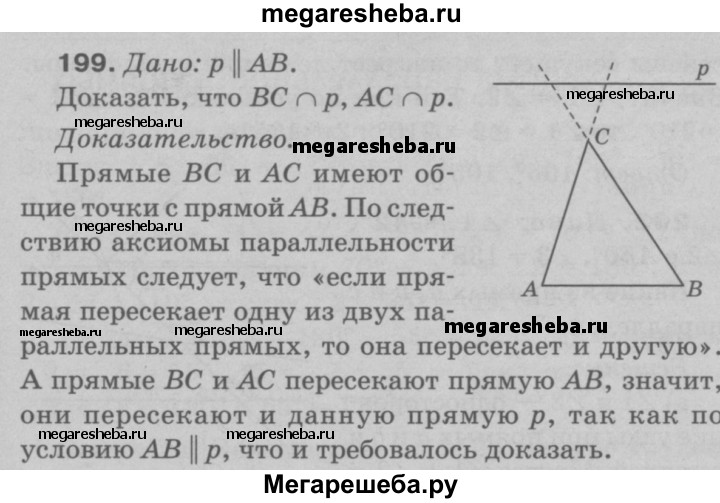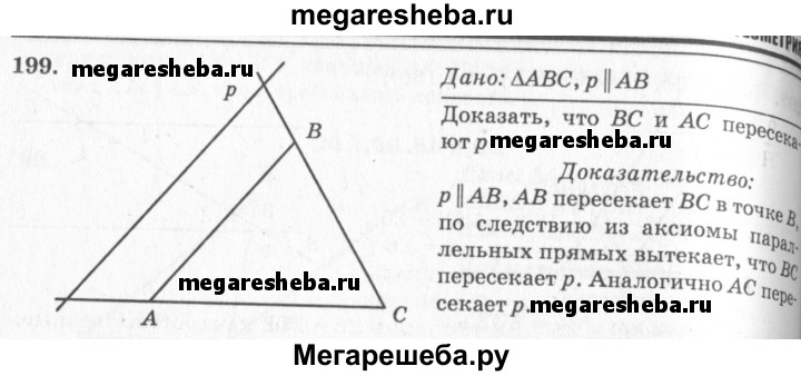 199 Прямая р параллельна стороне АВ треугольника ABC. Докажите, что прямые ВС и АС пересекают прямую р.