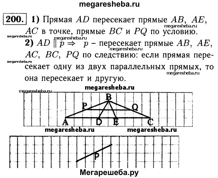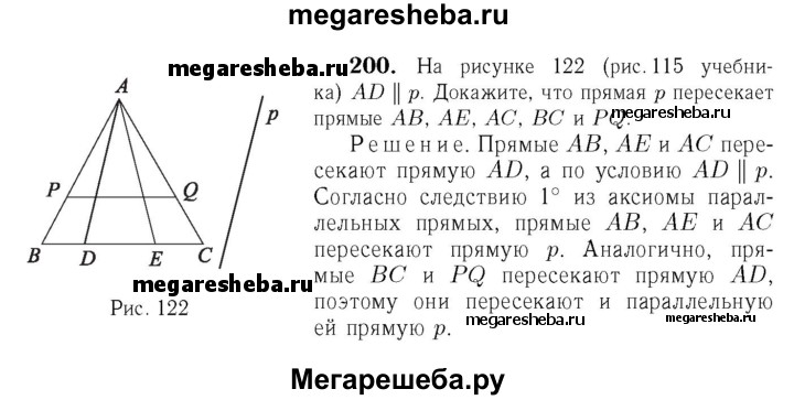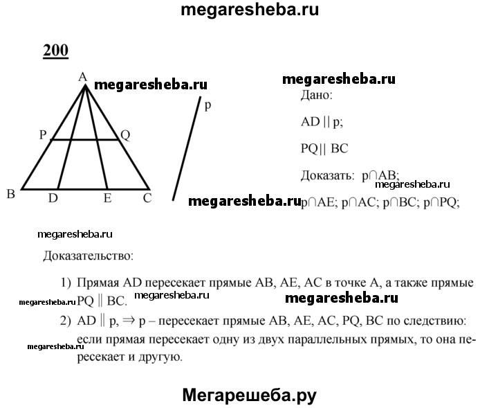 200 На рисунке 117 AD\\p и PQ || ВС. Докажите, что прямая р пересекает прямые АВ, АЕ, АС, ВС и PQ.