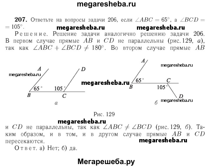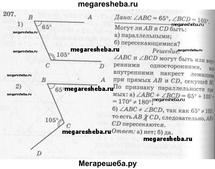 207 Ответьте на вопросы задачи 206, если ∠ABC = 65°, а ∠BCD = 105°.