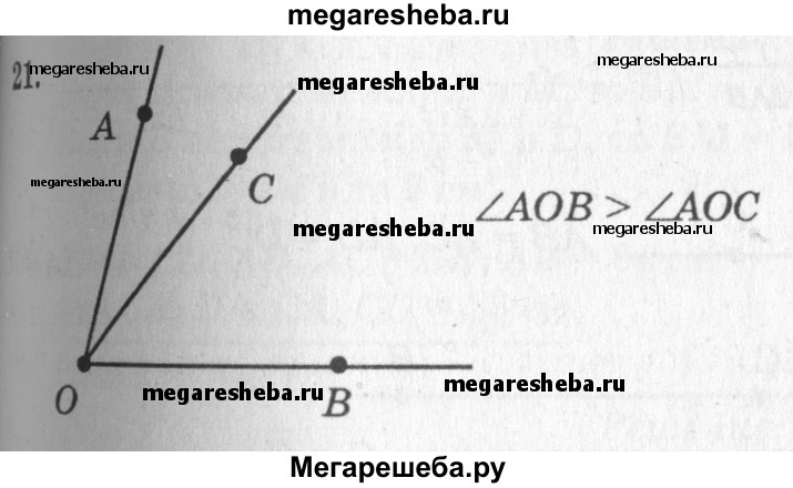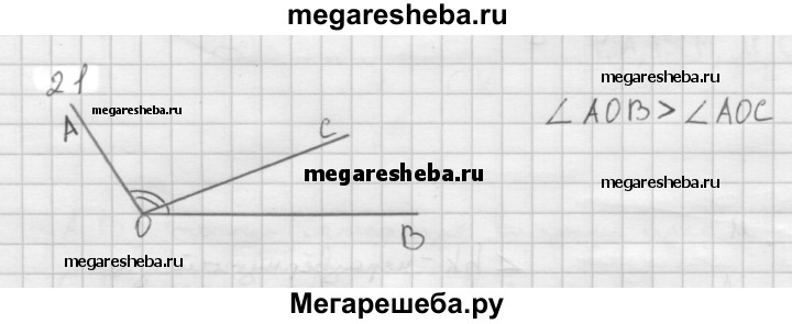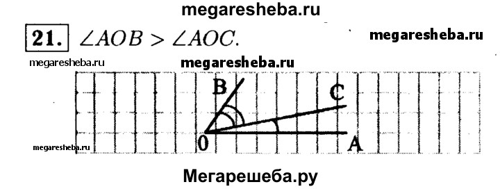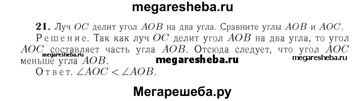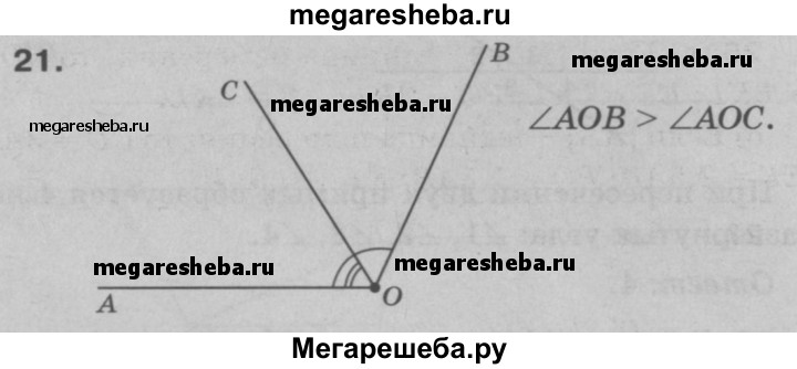 21 Луч ОС делит угол АОВ на два угла. Сравните углы АОВ и АОС.