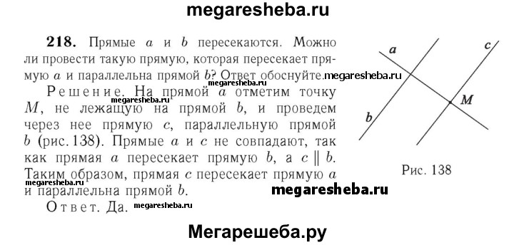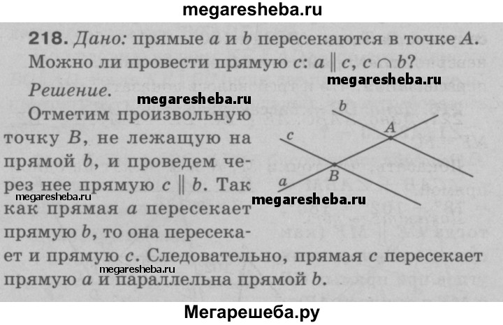 218 Прямые а и b пересекаются. Можно ли провести такую прямую, которая пересекает прямую а и параллельна прямой b Ответ обоснуйте.