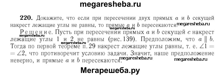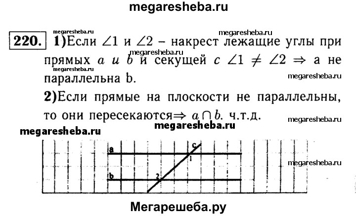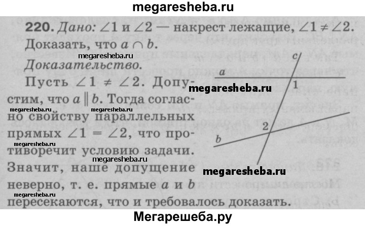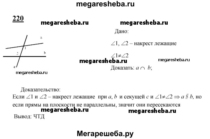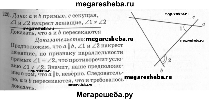 220 Докажите, что если при пересечении двух прямых а и b секущей накрест лежащие углы не равны, то прямые а и b пересекаются.