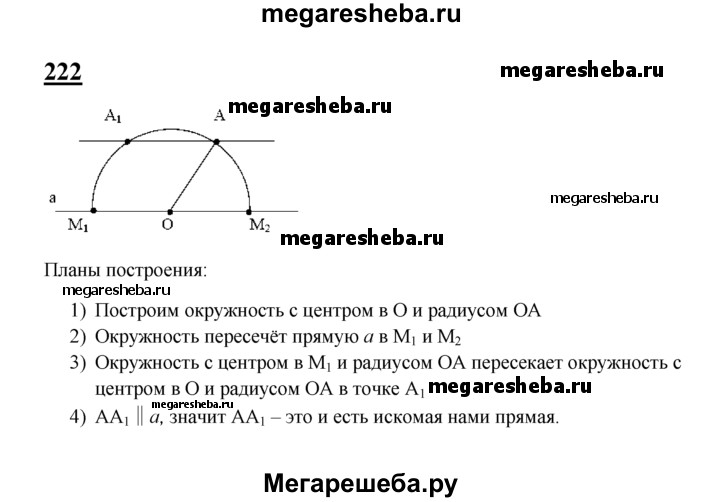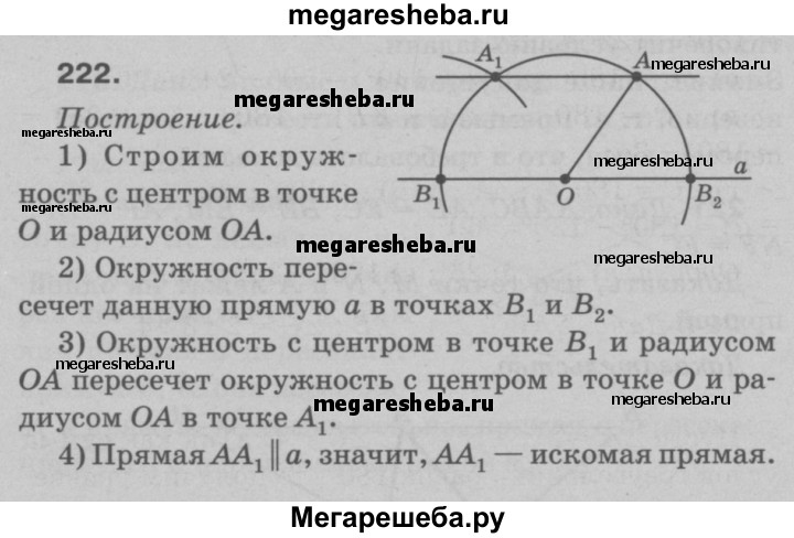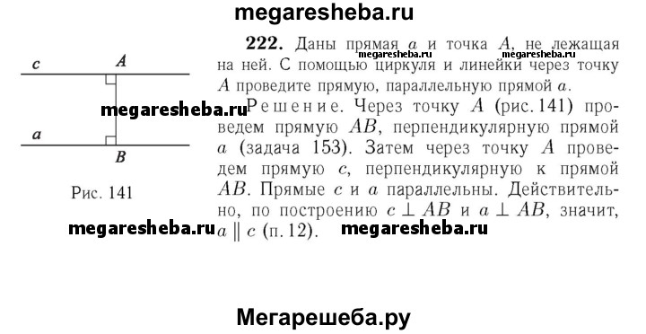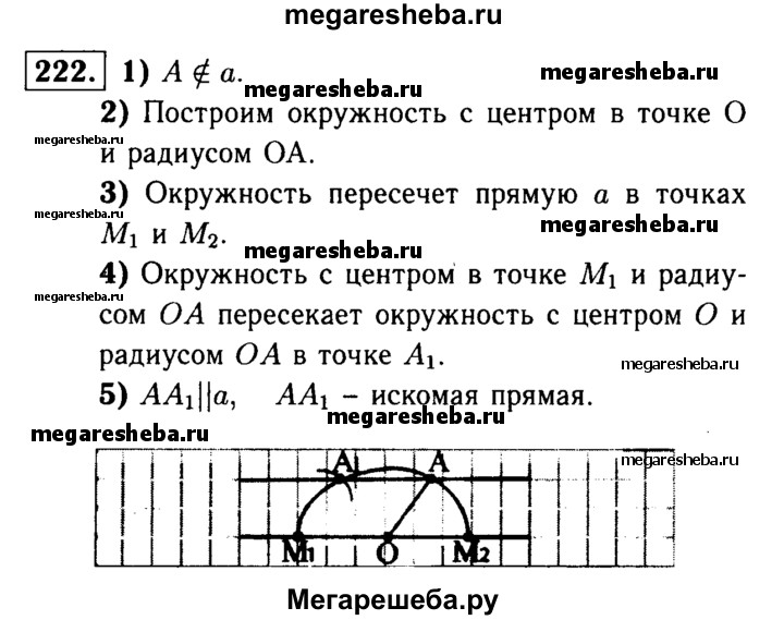 222 Даны прямая а и точка А, не лежащая на ней. С помощью циркуля и линейки через точку А проведите прямую, параллельную прямой а.