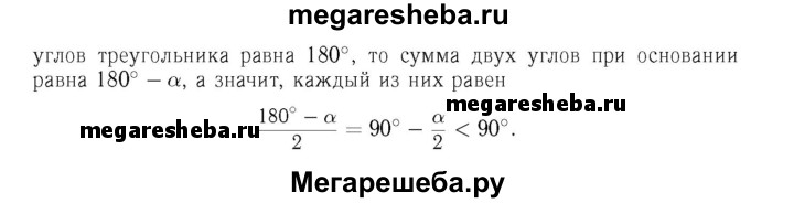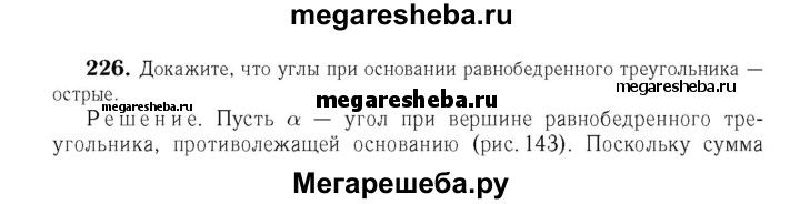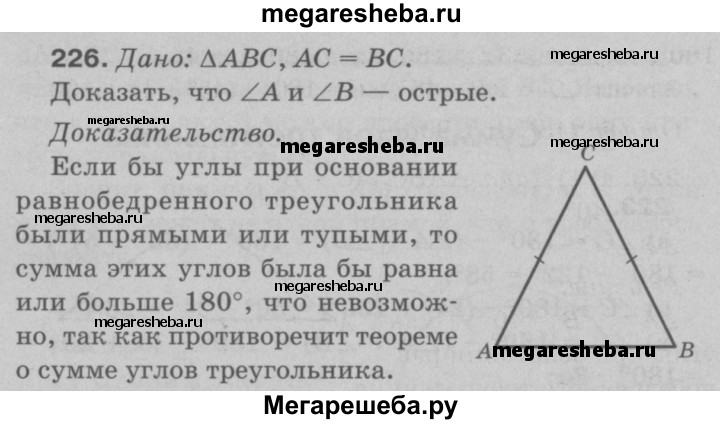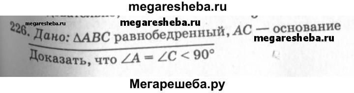 226 Докажите, что углы при основании равнобедренного треугольника острые.