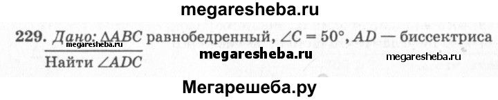 229 В равнобедренном треугольнике ABC с основанием АС проведена биссектриса AD. Найдите ΔADC, если АС = 50°.