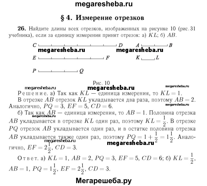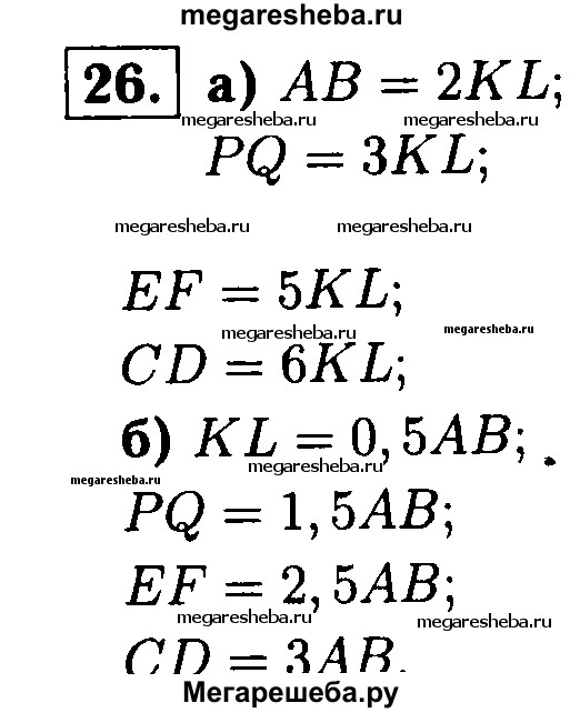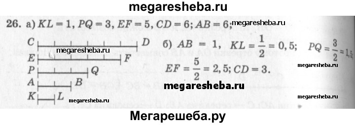 26 Найдите длины всех отрезков, изображённых на рисунке 31, если за единицу измерения принят отрезок: a) KL; б) АВ.