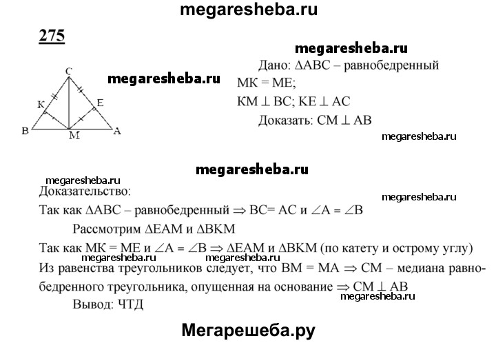 Гдз по геометрии 7-9 класс Атанасян, Бутузов ответ на номер № 275