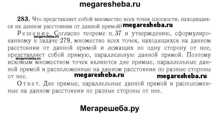 283 Что представляет собой множество всех точек плоскости, находящихся на данном расстоянии от данной прямой?