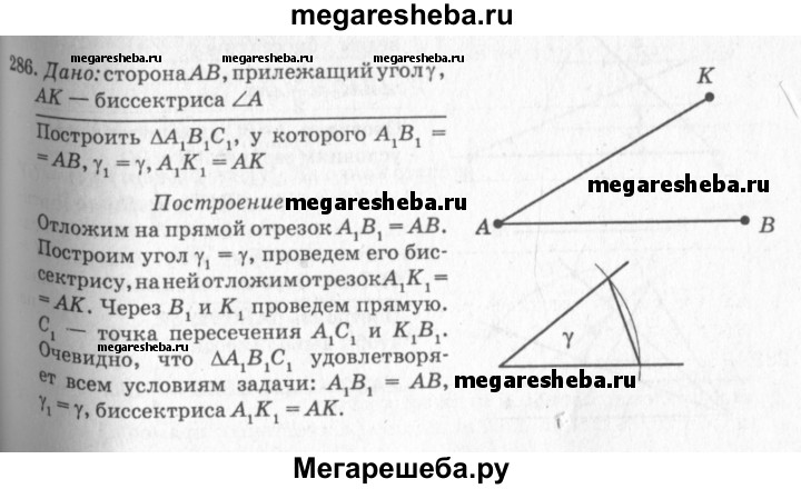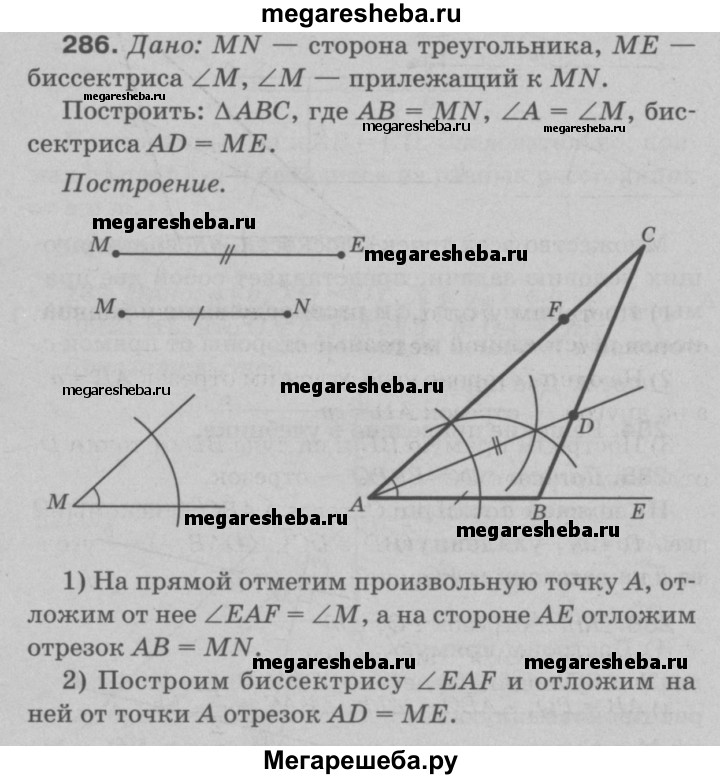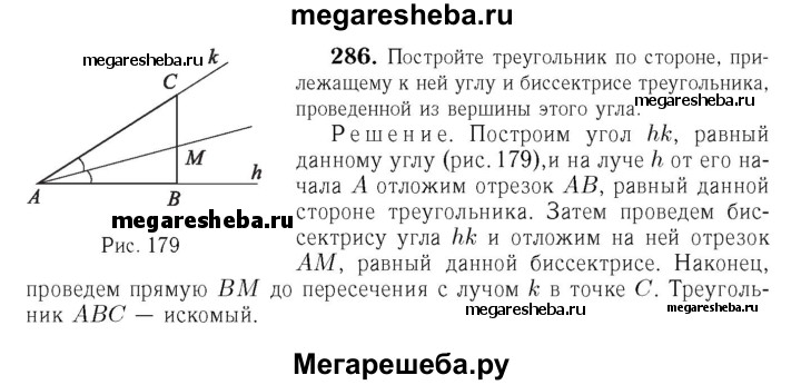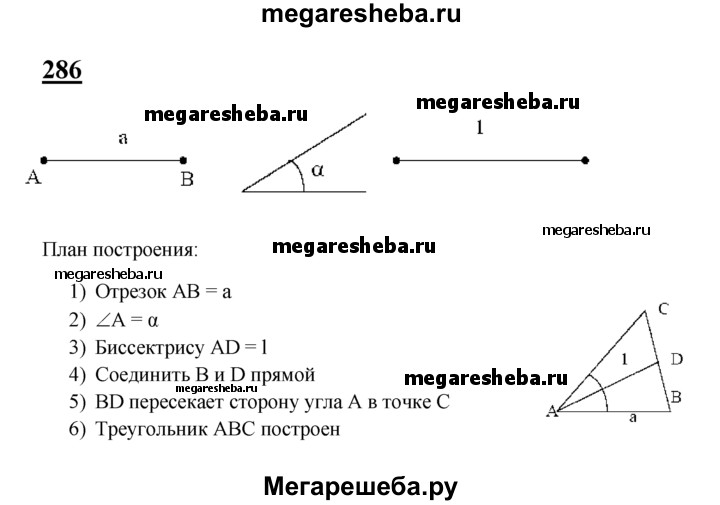 286 Постройте треугольник по стороне, прилежащему к ней углу и биссектрисе треугольника, проведённой из вершины этого угла.