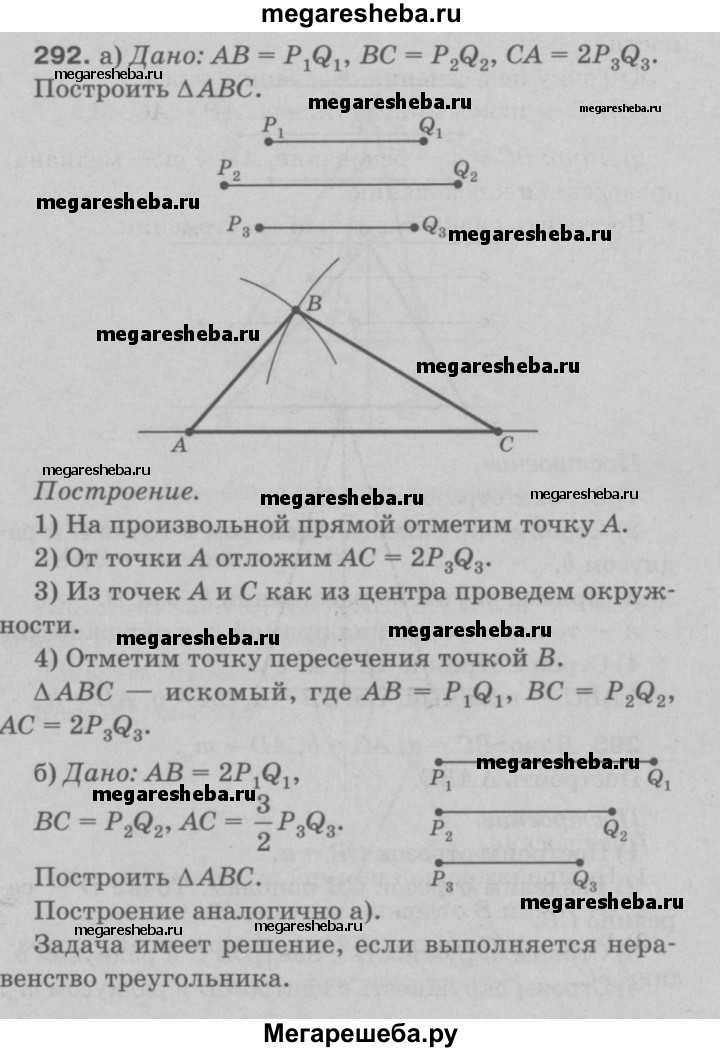 292 Даны отрезки P1Q1, P2Q2 и P3Q3- Постройте треугольник ABC так, чтобы: a) AB = P1Q1, BC = P2Q2, CA = 2P3Q3; б) AB = 2P1Q1, BC = P2Q2, CA = 3/2P3Q3;