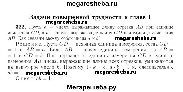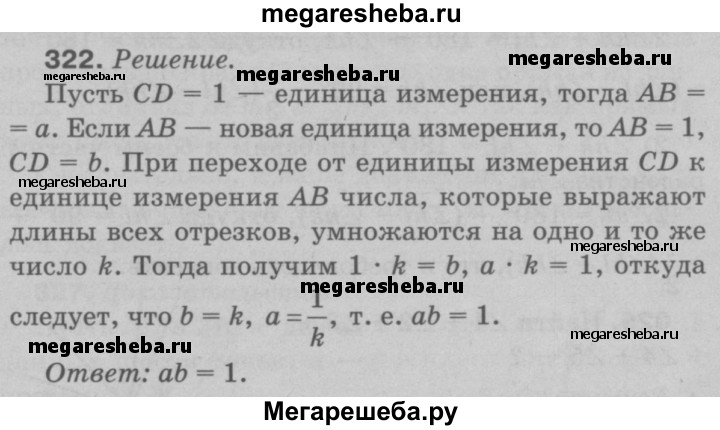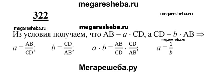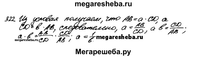 322 Пусть а — число, выражающее длину отрезка АВ при единице измерения CD, а b — число, выражающее длину отрезка CD при единице измерения АВ. Как связаны между собой числа а и b?
