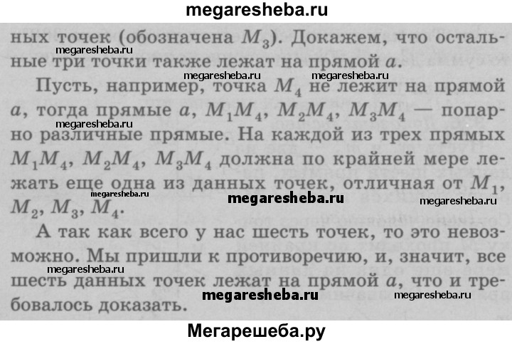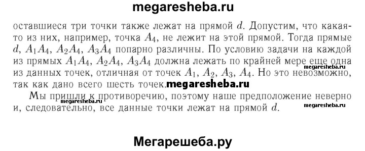 327 Даны шесть точек. Известно, что прямая, проходящая через любые две точки, содержит по крайней мере ещё одну из данных точек. Докажите, что все эти точки лежат на одной прямой.