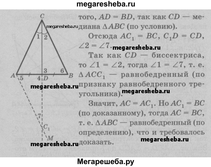 342 Докажите теорему: если в треугольнике биссектриса является медианой, то треугольник равнобедренный.