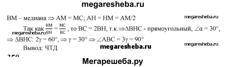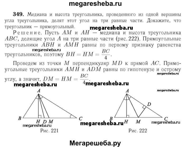 349 Медиана и высота треугольника, проведённые из одной вершины угла треугольника, делят этот угол на три равные части. Докажите, что треугольник прямоугольный.