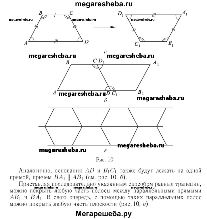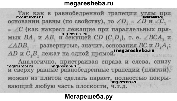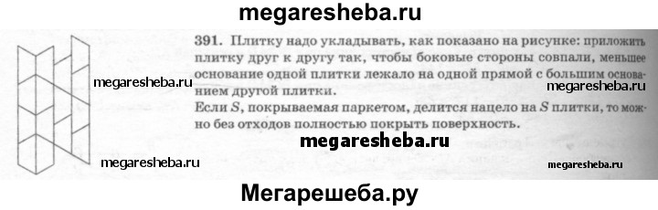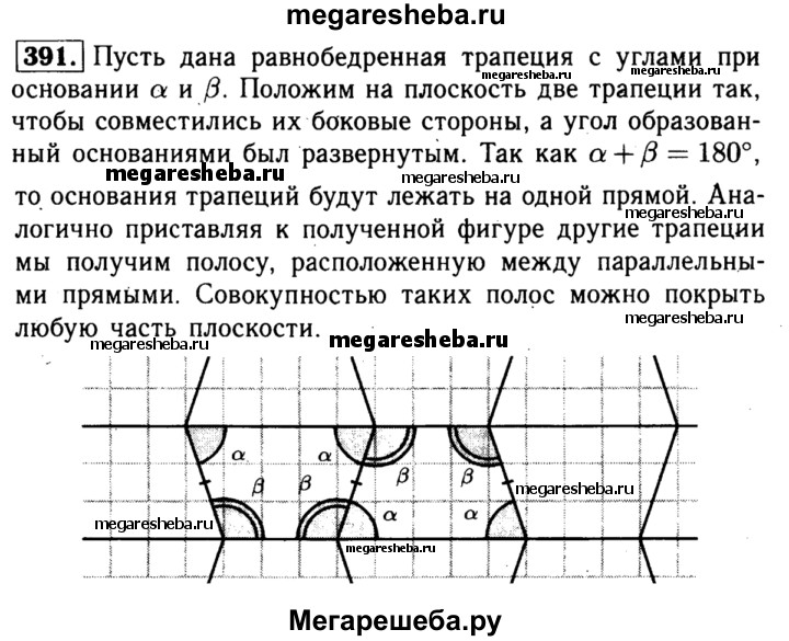 391 Докажите, что из одинаковых плиток, имеющих форму равнобедренной трапеции, можно сделать паркет, полностью покрывающий любую часть плоскости.