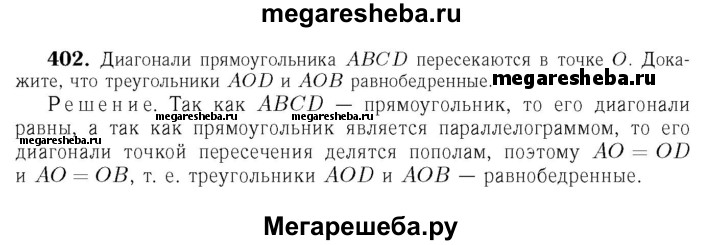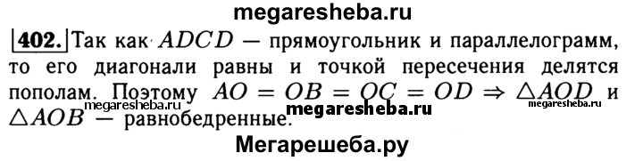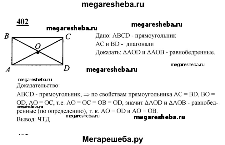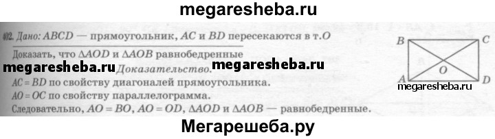 402 Диагонали прямоугольника ABCD пересекаются в точке О. Докажите, что треугольники AOD и АОВ равнобедренные.