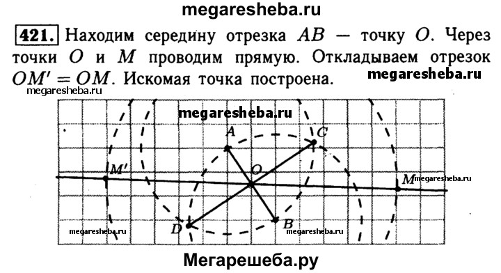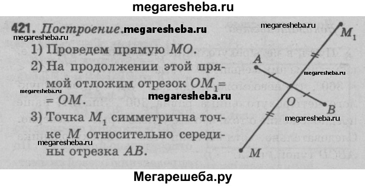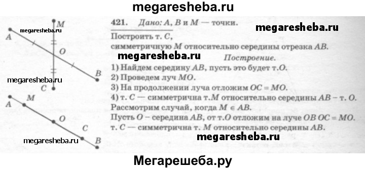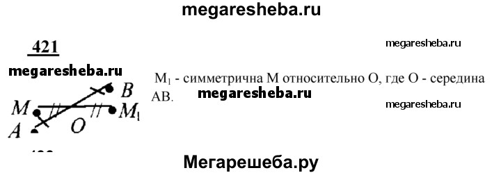 421 Даны точки А, и М. Постройте точку, симметричную точке М относительно середины отрезка АВ.