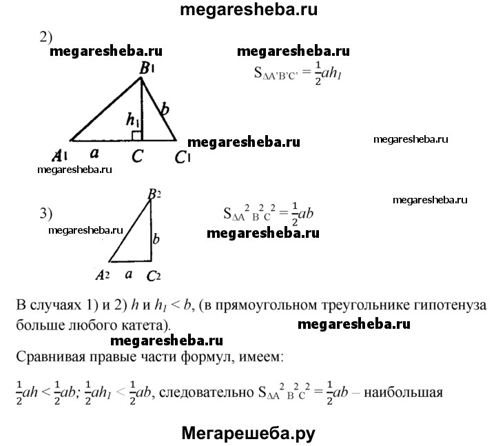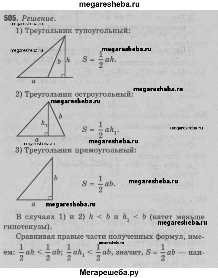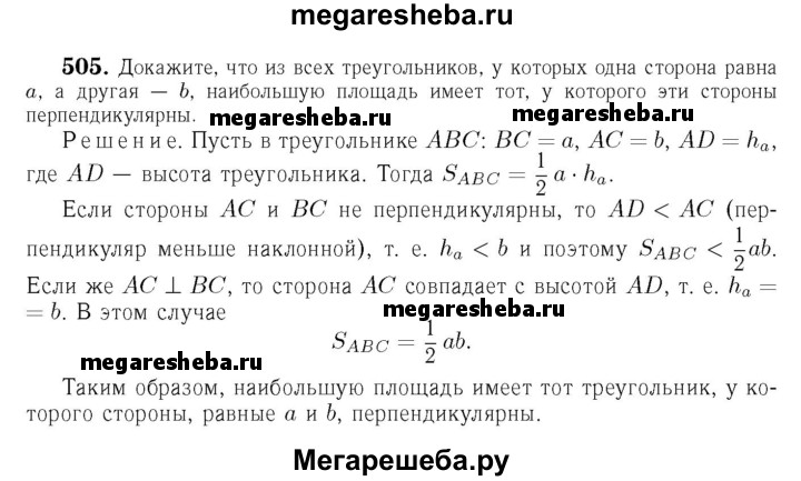 505 Докажите, что из всех треугольников, у которых одна сторона равна а, а другая — b, наибольшую площадь имеет тот, у которого эти стороны перпендикулярны.