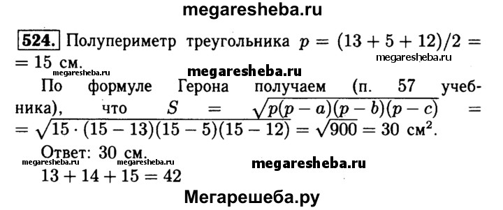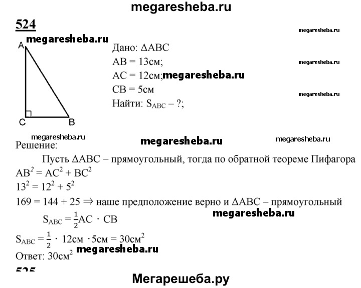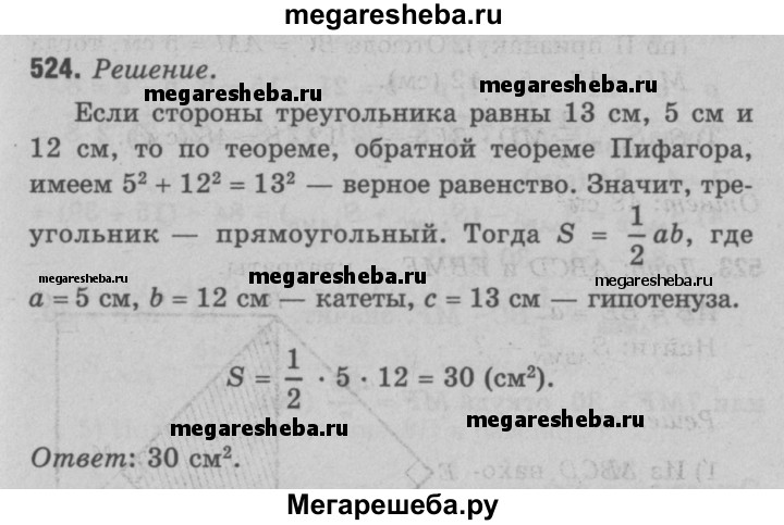 524 Стороны треугольника равны 13 см, 5 см и 12 см. Найдите площадь этого треугольника