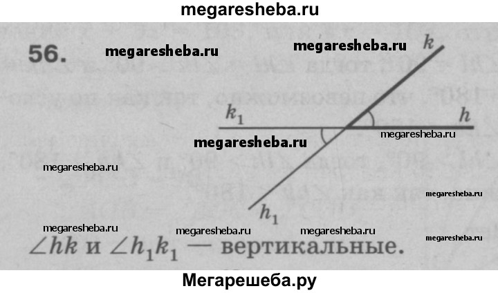 56 Начертите неразвёрнутый угол hk. Постройте угол h1 так, чтобы углы hk и h1 k1 были вертикальными.