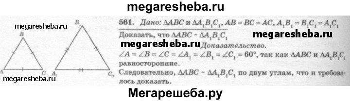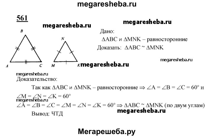 561 Докажите, что два равносторонних треугольника подобны.