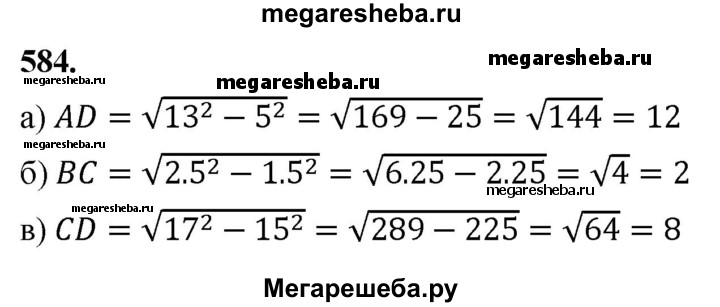 Подробный решебник (ГДЗ) по Геометрии за 7‐9 (седьмой‐девятый) класс - готовый ответ задача - 584. Авторы учебника: Атанасян, Бутузов, Кадомцев, Позняк, Юдин. Издательство: Просвещение 2016-2025.