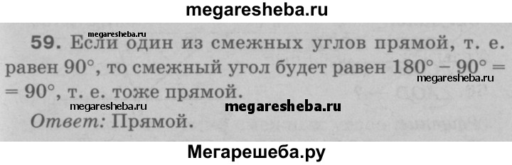 59 — Один из смежных углов прямой. Каким (острым, прямым, тупым) является другой угол?