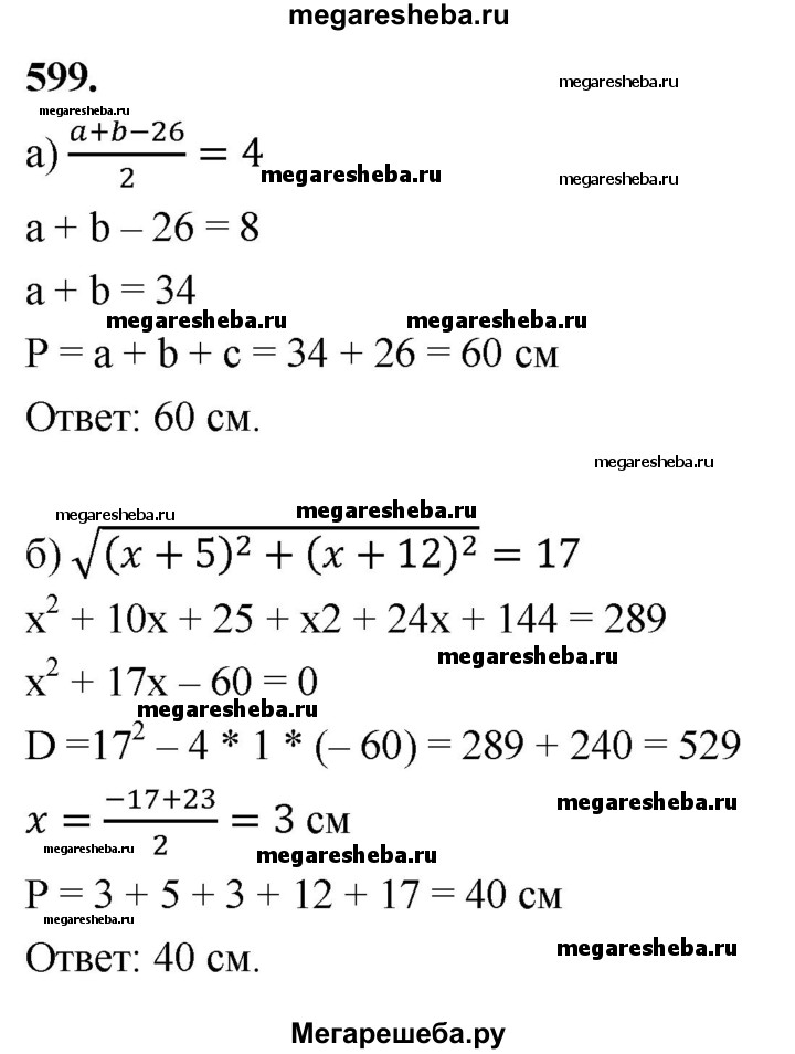 Гдз по геометрии 7-9 класс Атанасян, Бутузов ответ на номер № 599