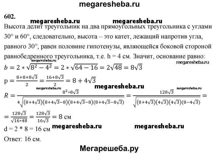 Подробный решебник (ГДЗ) по Геометрии за 7‐9 (седьмой‐девятый) класс - готовый ответ задача - 602. Авторы учебника: Атанасян, Бутузов, Кадомцев, Позняк, Юдин. Издательство: Просвещение 2016-2025.