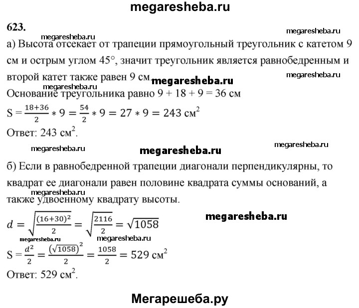 Подробный решебник (ГДЗ) по Геометрии за 7‐9 (седьмой‐девятый) класс - готовый ответ задача - 623. Авторы учебника: Атанасян, Бутузов, Кадомцев, Позняк, Юдин. Издательство: Просвещение 2016-2025.
