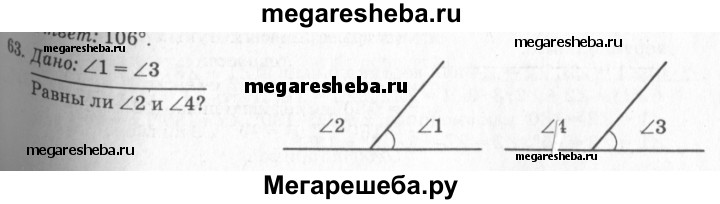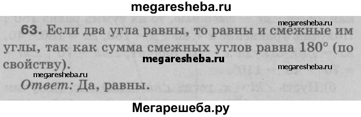 63 Даны два равных угла. Равны ли смежные с ними углы?