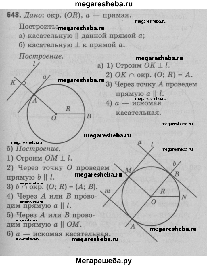 648 Постройте касательную к окружности с центром О: а) параллельную данной прямой; б) перпендикулярную к данной прямой.
