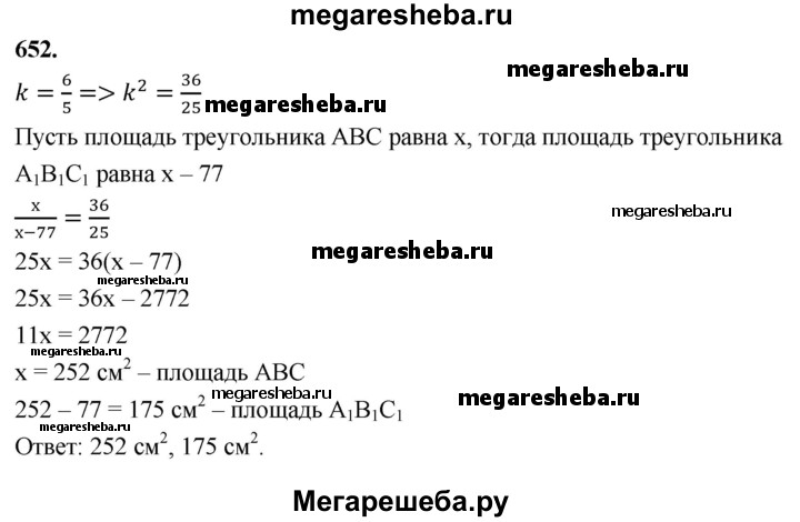 Подробный решебник (ГДЗ) по Геометрии за 7‐9 (седьмой‐девятый) класс - готовый ответ задача - 652. Авторы учебника: Атанасян, Бутузов, Кадомцев, Позняк, Юдин. Издательство: Просвещение 2016-2025.