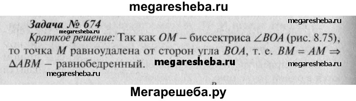 674 Из точки М биссектрисы неразвёрнутого угла О проведены перпендикуляры МА и MB к сторонам этого угла. Докажите, что АВ ⊥ ОМ.