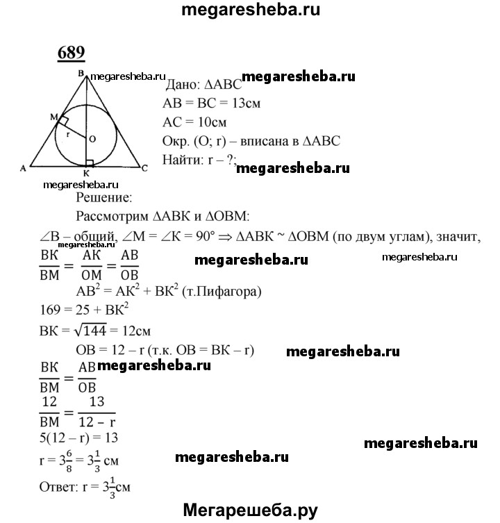 Гдз по геометрии 7-9 класс Атанасян, Бутузов ответ на номер № 689