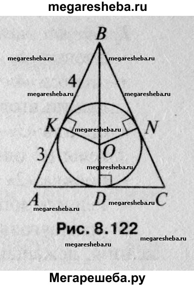 691 Точка касания окружности, вписанной в равнобедренный треугольник, делит одну из боковых сторон на отрезки, равные 3 см и 4 см, считая от основания. Найдите периметр треугольника.