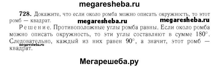 728 Докажите, что если около ромба можно описать окружность, то этот ромб — квадрат.