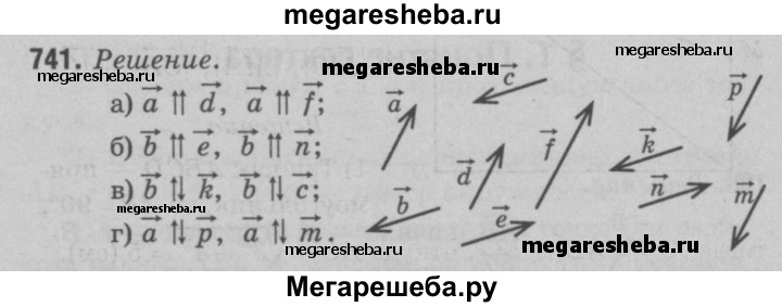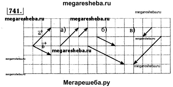 741 Начертите два неколлинеарных вектора а и b. Изобразите несколько векторов: а) сонаправленных с вектором а; б) сонаправленных с вектором b; в) противоположно направленных вектору b; г) противоположно направленных вектору а