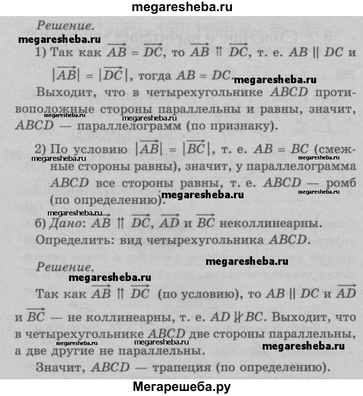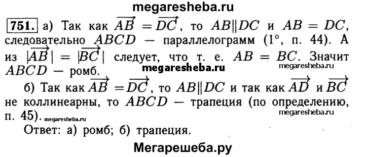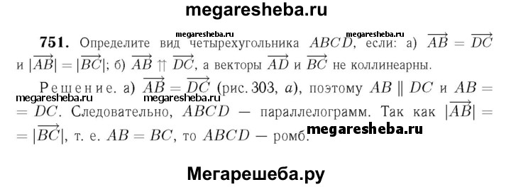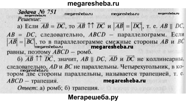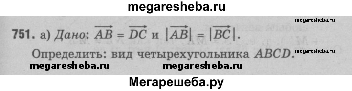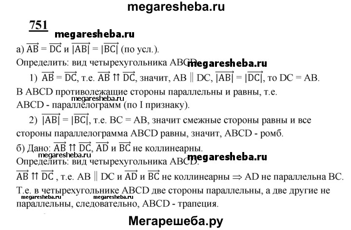 751 Определите вид четырёхугольника ABCD, если: a) AB = DC и |АВ| = |ВС|; б) AB ↑↑ DC, а векторы AD и ВС не коллинеарны.