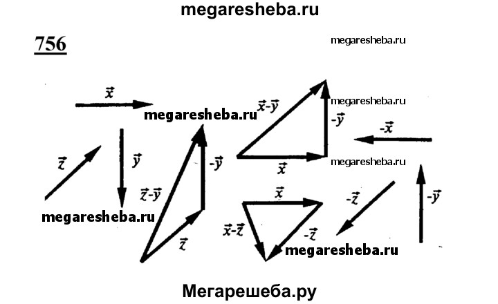 756 Начертите попарно неколлинеарные векторы х, у, z и постройте векторы х-у, z-y, x-z, -х, -у, -z